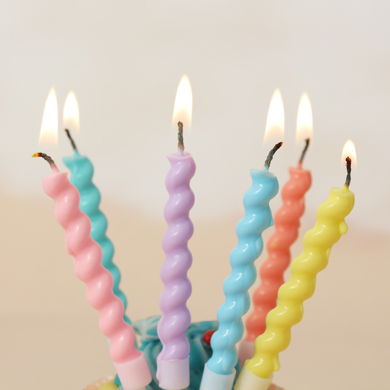 6 × Macaron Color Twisted Spiral Birthday Candles